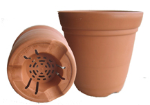 | Fresh Air Pot: Indented at the bottom with a raised drainage hole, this pot provides excellent air circulation. Comes with saucer in a natural terra cotta color. Available in 5", 6" and 9.5" | |||||||||||||||||||||||