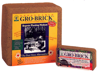Natural Coconut Fibers “Coir” Gro-Brick is made of 100% coconut fibers which can be used as a renewable organic growing medium or as an alternative of peat moss to improve soil conditions. Not only does it hold moisture longer, it also stays porous, and resists compacting! |